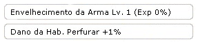 Observação: Em caso de falha no aprimoramento, a arma perde 1 nível de envelhecimento. Por exemplo, se a arma estiver no nível 2 e falhar do +2 para o +3, a arma retornará para o nível 1 de aprimoramento, mas nunca quebrará.