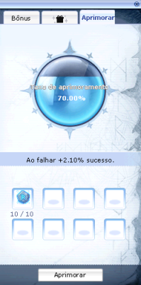 Ao tentar o upgrade, existe a possibilidade de falha no aprimoramento. - Em caso de falha, os materiais usados são consumidos. - O nível do conjunto não diminui, permanecendo igual ao anterior.