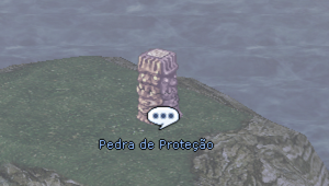 2. Ao chegar na ilha Misty, entre na fila da instância falando com a Pedra de Proteção.